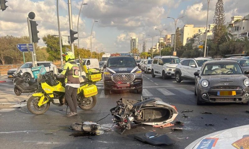 רוכב אופנוע בן 40 פונה אל בית החולים במצב קשה אחרי שנפגע מרכב ברחוב התקומה בראשון לציון