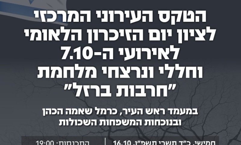 עיריית רמת-גן תקיים ביום חמישי, כ״ד בתשרי תשפ״ו, 16.10.2025, סדרת טקסים ואירועים עירוניים לציון יום הזיכרון הלאומי לאירועי השבעה באוקטובר ולחללי ונרצחי מלחמת "חרבות ברזל".