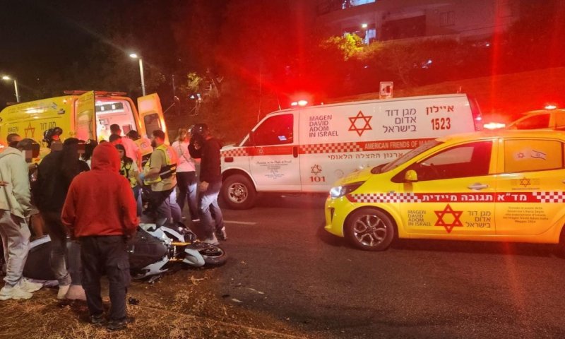 .צילום: תיעוד מבצעי מדאחן בדור ראש סניף איחוד הצלה בחולון, והחובשים אלעד חכים בובי, שרית רובין ובת אל מליק מסרו: "מדובר בתאונה עם מעורבות רכב ורוכב אופנוע שנחבל בגפיו ובראשו. הענקנו לו סיוע רפואי ראשוני בזירה ולאחר מכן הוא פונה לבית חולים כשמצבו בשלב זה מוגדר בינוני עד קשה".
