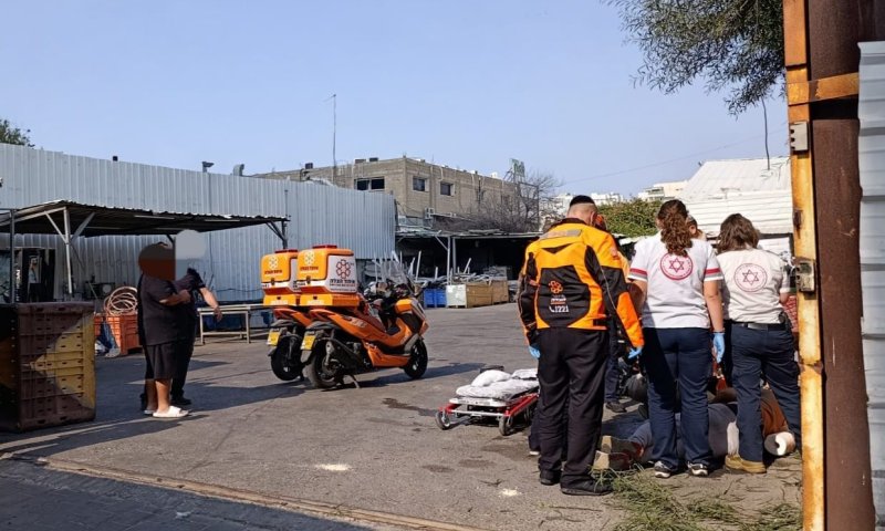 שמואל משולם, יצחק ומירב מוגרבי (בעל ואישה) חובשי איחוד הצלה מסרו: "נמסר לנו בזירה כי הוא נפל מגובה תוך כדי עבודתו ובעקבות כך נחבל בראשו ובגפיו. הענקנו לו סיוע רפואי ראשוני בזירה ולאחר מכן הוא פונה לבית החולים איכילוב במצב בינוני".
