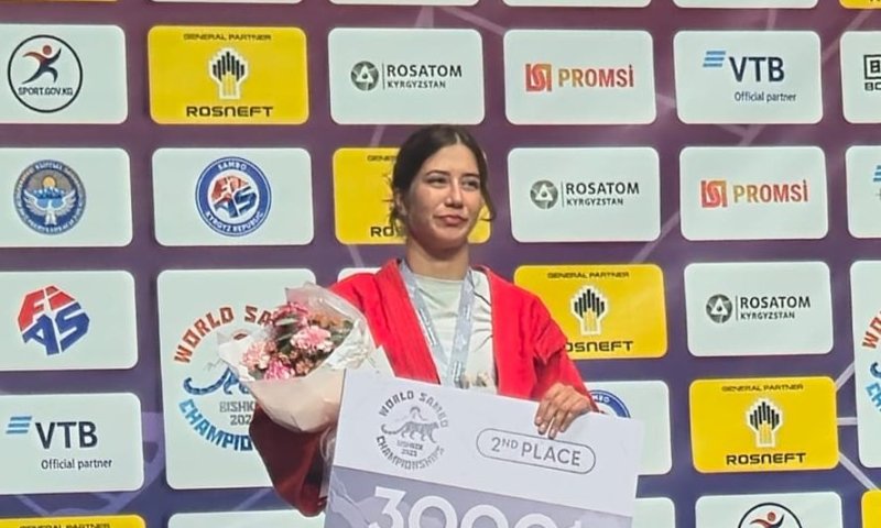 בסוף השבוע בקירגיסטן היא נוצחה בגמר אליפות העולם לקומבאט סמבו (72 ק"ג) בידי מתמודדת רוסיה לאחר שהכניעה יריבה מקומית מול הקהל הביתי בבישקק בירת קירגיסטן, בנוק אאוט בקרב הראשון, וניצחה בניקוד יריבה אוזבקית בחצי הגמר.