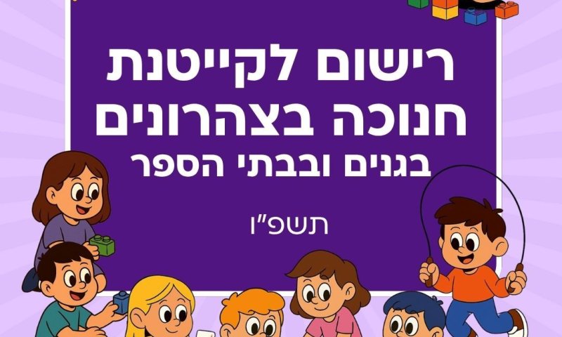 ההרשמה לקייטנות חנוכה של צהרוני העיר נפתחה ותימשך עד יום ראשון, 23.11, בשעה 10:00. לאחר מועד זה, הרישום יתאפשר על בסיס מקום פנוי בלבד.
