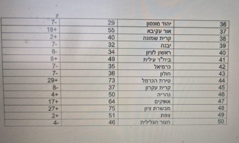 על פי המדד גבעתיים ממשיכה להוביל את הטבלה והיא העיר עם דירוג האשראי הממוצע הגבוה ביותר. אחריה קדימה צורן עם עליה של שישה מקומות מהשנה שעברה.