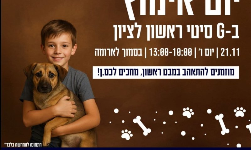 יום האימוץ ייערך ביום שישי, 21 בנובמבר 2025, בין השעות 10:00–13:00, בסינמה סיטי ראשון לציון.