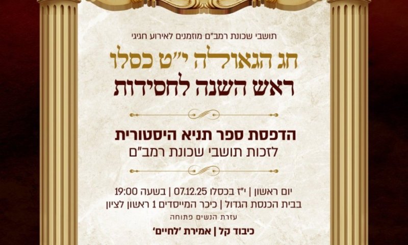 אירוע ההדפסה החגיגי יתקיים אי"ה ביום ראשון, י"ז בכסלו תשפ"ו (7.12.25) בשעה 19:00, בבית הכנסת הגדול בכיכר המייסדים. במעמד ישתתפו רבני העיר, שלוחי חב"ד, אישי ציבור, ותושבים מכל רחבי ראשון לציון שיבואו להשתתף ברגע רוחני של השראה, חיבור ואחדות.