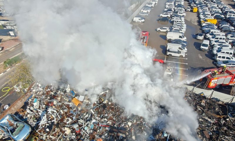 לוחמי האש פועלים בשריפת אתר פסולת וגרוטאות ברחוב התעשיין